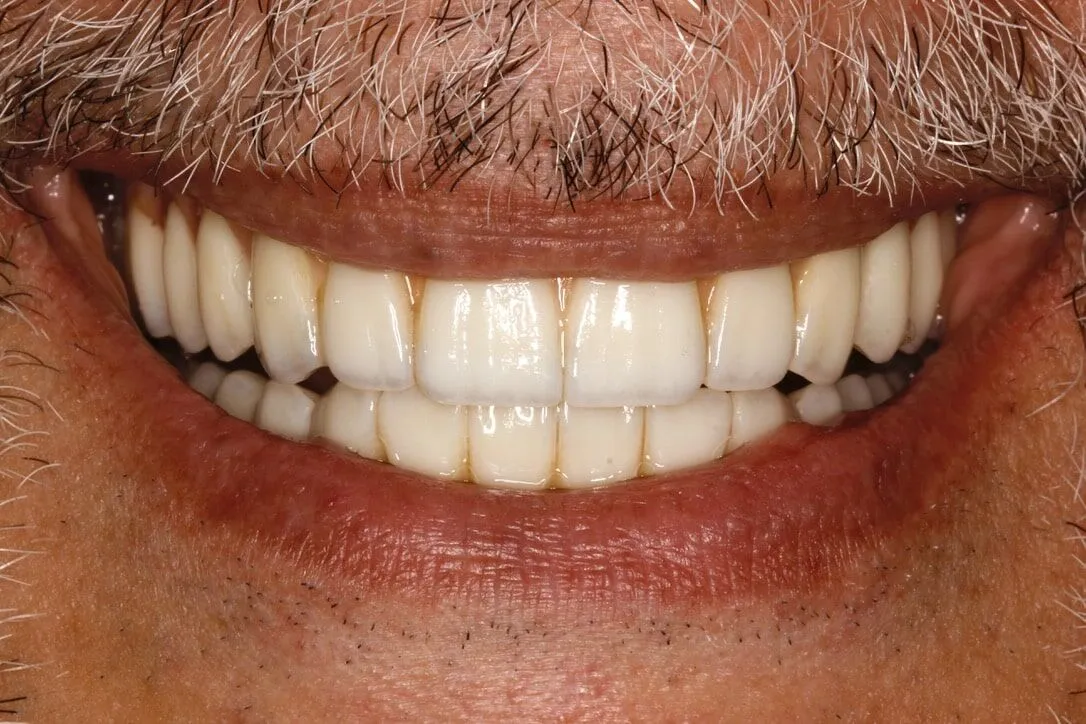 The patient is now free of sensitivity, enjoying a stable bite and a beautiful new smile that has fully restored his confidence.