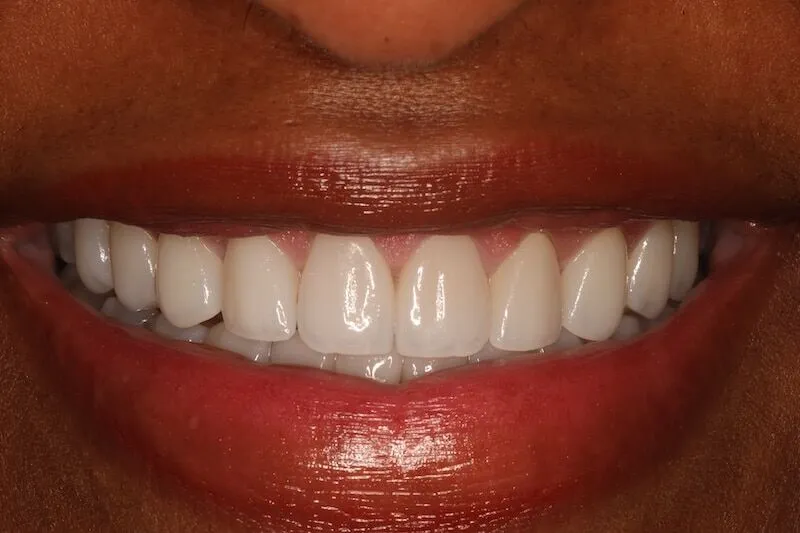 Lab Collaboration: On Day 11, the patient reviewed the final restorations. She requested a minor aesthetic adjustment to match her personal taste. Because we have an in-house laboratory, our technicians made the modifications immediately.