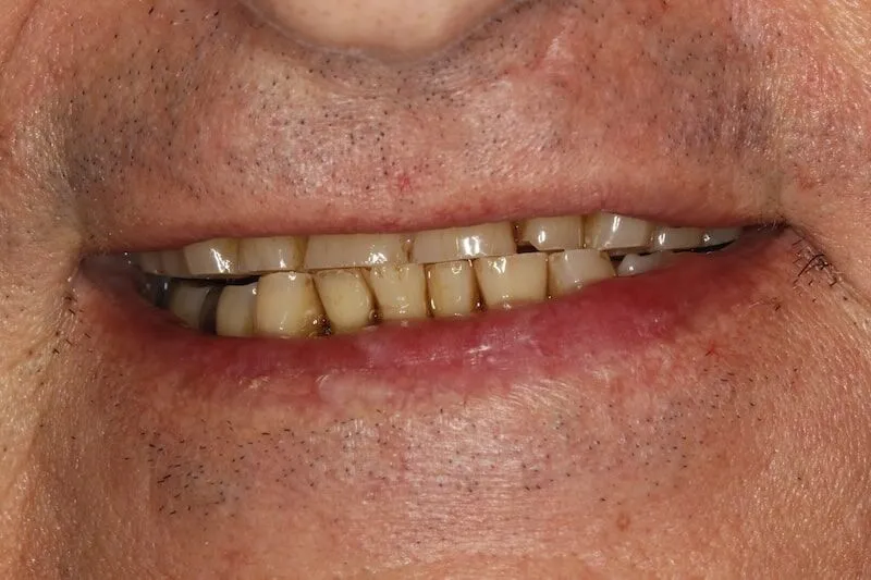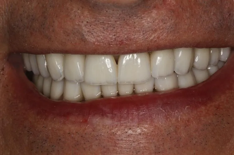 The treatment plan included lengthening his natural teeth at the gum line to create a stronger foundation for his final restorations. This ensured both functional success and a proportionate aesthetic smile.