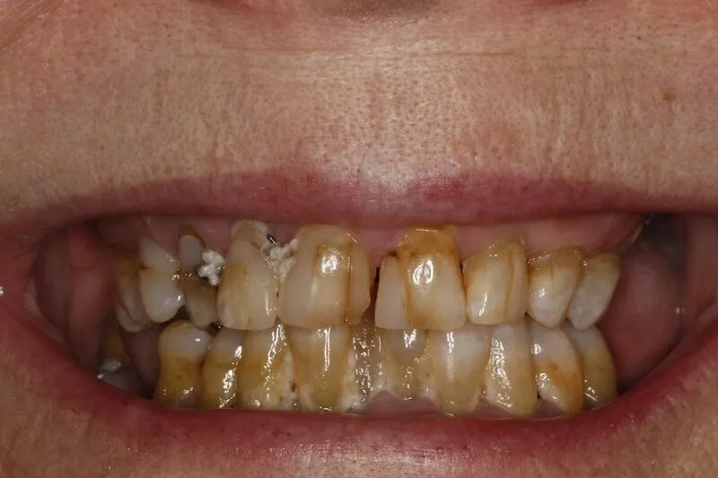 The patient had been suffering from chronic oral pain for a long time. She was unable to chew properly and was completely unhappy with the appearance of her teeth, which significantly affected her quality of life.